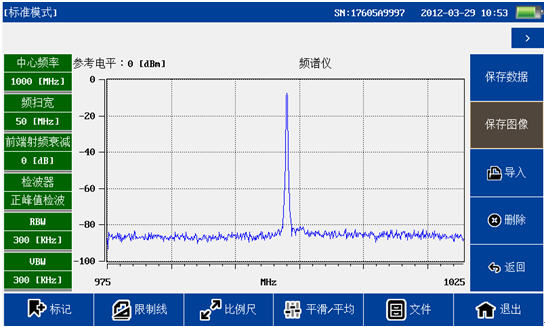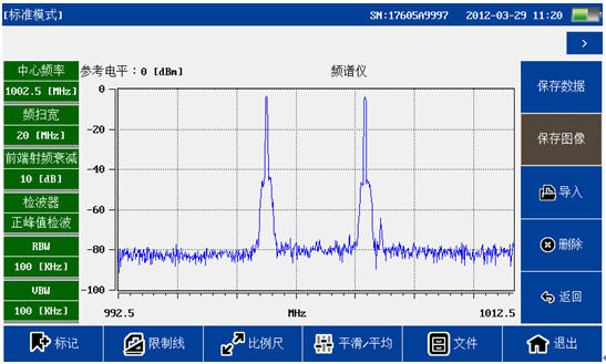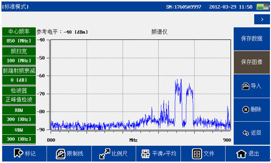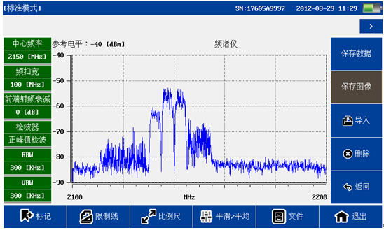 頻譜分析模塊覆蓋頻率范圍300MHz-4GHz,100dB超大動態(tài)范圍,-130dBm平均噪底@RBW=1kHz,提供頻譜測試,干擾排查等測試。